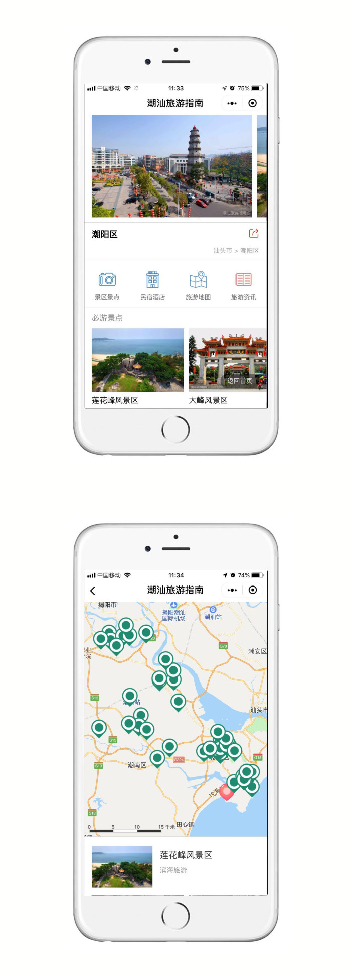 潮阳区是汕头市下辖的区县,2018年,潮阳区荣获千年古县称号。潮趣科技帮助潮阳区旅游局设计制作了潮阳全区旅游微导览小程序,并关联至潮阳旅游公众号。通过在全区所有景区景点设置二维码导览牌,连接线上与线下的游客,帮助游客更好地游玩潮阳区。